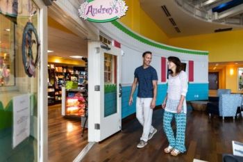 Die Rezeption des Pink Shell Beach Resort & Marina finden Sie in den White Sand Villas in der Main Lobby im ersten Stock. Um dorthin zu gelangen, benutzen Sie einen der beiden Aufzüge auf der rechten Seite des Eingangsbereiches. Zu den Apartments kommen Sie ebenfalls mit diesen Aufzügen. Wenn Sie möchten, wird Ihr Gepäck von freundlichen Bellboys zu Ihrem Apartment gebracht. Hier befinden sich auch Rae´s Real Italian Restaurant, Bongo’s Bar & Grill, mehrere Konferenzräume in verschiedenen Größen sowie Audrey´s Market. Dort gibt es Souvenirs, Mitbringsel, eine kleine Auswahl von Lebensmitteln und Getränken und vieles andere mehr. Geöffnet täglich von 7.00 bis 21.00.