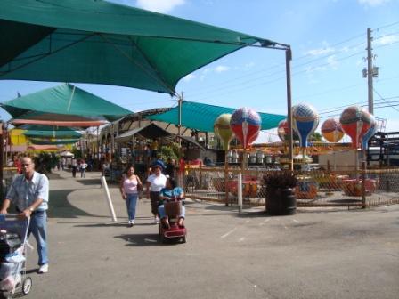 Ein Einkaufs-Eldorado, das Sie unbedingt erlebt haben müssen, ist die Festival Flea Market Mall. Echt angenehmes Einkaufen in einem großflächigen klimatisierten Gebäude. Über 800 Geschäfte und Booths (Stände) mit Waren aller Art, wie Schmuck, Uhren, Brillen, modische und saloppe Bekleidung, Bademoden, Geschenkartikel, Kosmetika, Electronicgeräte, Plexiglas-Artikel und ... und ... und ... Sogar Gemüse, Backwaren, Haushaltsartikel und Möbel. Dazu ein großer Food Court mit internationalen Spezialitäten, denn Einkaufen macht irgendwann Hunger und Durst. An allen Eingängen liegt die kostenlose "Festival Times" aus mit aktuellen Informationen und Angeboten. Darin finden Sie auch einen Übersichtsplan mit allen Geschäften und Verkaufsständen. Fahren Sie auf der Sample Road (SR 834) - der zweiten großen Ost-/West-Verbindung nördlich des Atlantic Blvd. - nach Westen bis zur 29. Avenue, das ist die letzte Ampel vor dem Florida Turnpike. Die riesige Mall mit mehreren Eingängen und ungezählten Parkplätzen liegt dann zu Ihrer Linken. Merken Sie sich den Namen des Eingangs, den Sie benutzen, damit Sie später wieder zu Ihrem Auto zurückfinden. |